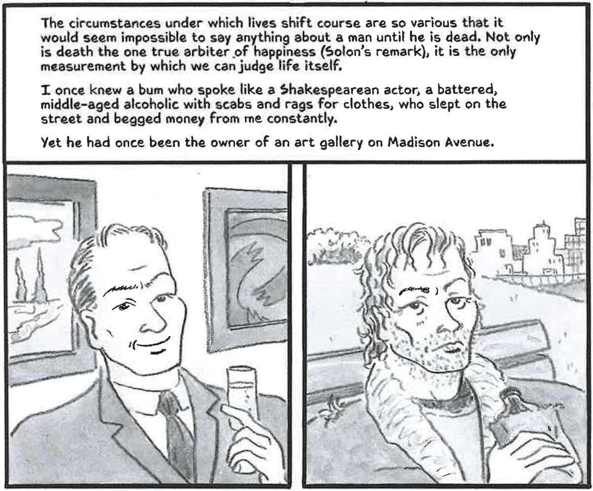 Maar wat The locked room vooral tot een mislukte bewerking maakt, is de keuze van Karasik om niet samen te werken met een andere tekenaar maar de tekenpen zélf ter hand te nemen. En Karasik is een heel, heel beperkt tekenaar. Een goede striptekenaar weet de lezer mee te voeren in zijn wereld. Karasik nodigt niet uit tot lezen. De pagina’s zijn ronduit lelijk en scheppen juist afstand tussen de lezer en het album. Doodzonde.