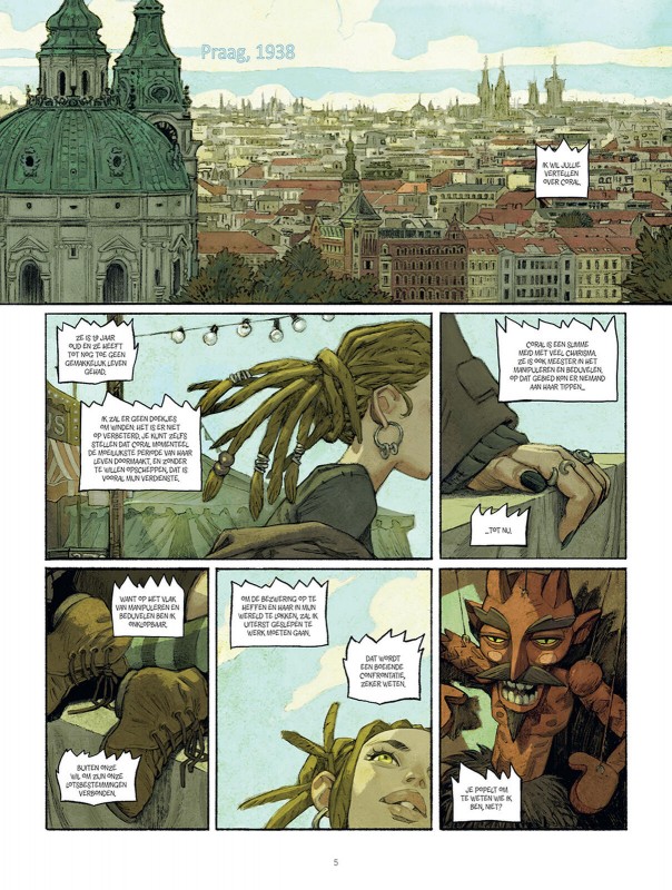 Coral en de duivel is zijn eerste soloproject. Het boek speelt zich af in Praag, net voor het uitbreken van de Tweede Wereldoorlog. In de openingsscène zie je het joodse meisje Coral dat naar een poppenkastvoorstelling staat te kijken. Naast haar hangt de duivel in de lucht. Zij is de enige die hem kan zien. Al snel blijkt dat de twee veroordeeld zijn tot elkaars aanwezigheid. Allebei willen ze wel los van elkaar komen, maar dat gaat niet zomaar.