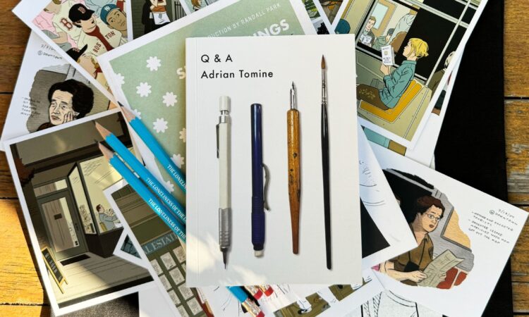 Hoe mooi is dat? Alle interessante, heel specifieke en technische vragen die stripmaker en illustrator Adrian Tomine (Killing and dying, Optic Nerve) kreeg, verzamelde hij in een handzaam boekje en beantwoordde hij uitvoerig. De vragen zijn soms triviaal (hoe spreek je je familienaam eigenlijk uit?), soms technisch (welk pennetje gebruik je voor het inkten en op welk papier?) of opportuun (kun je me helpen met het pitchen van mijn idee?), maar altijd kiest Tomine voor een serieus antwoord waarin hij vaak een stapje extra zet. Daarmee is Q & A van Adrian Tomine het echte antwoord op de klassieke vraag ‘alles wat je altijd al had willen weten, maar nooit durfde te vragen’.