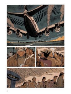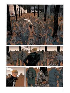 Die structuur van een enkele nacht, in plaats van een uitgesponnen drama, maakt het verhaal intens en beklemmend. Er is nauwelijks ontsnapping aan voor Freddy en voor de lezer. De tekeningen van Perriot, die eerder indruk maakte met Negalyod, zijn het hart van de beklemming. Zijn lijnvoering is nerveus, jittery zelfs. Perspectieven worden geforceerd en figuren lijken te bewegen voordat je ze bewust registreert. De achtergronden schemeren vaak in half‑licht en het contrast doet denken aan klassieke noir‑fotografie of expressionistische cinema. De verstikkende stad, de schemerige stegen en de getekende schaduwen dragen bij aan de illusie dat je ondergedompeld bent in een wereld waarin menselijkheid nauwelijks overleeft. Als lezer word je gedwongen de duisternis te voelen.