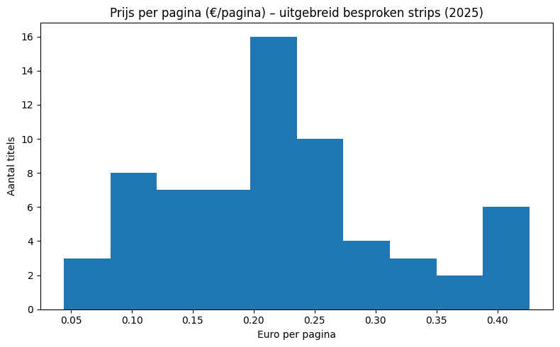 - De meeste titels vallen tussen € 0,15 en € 0,25 per pagina