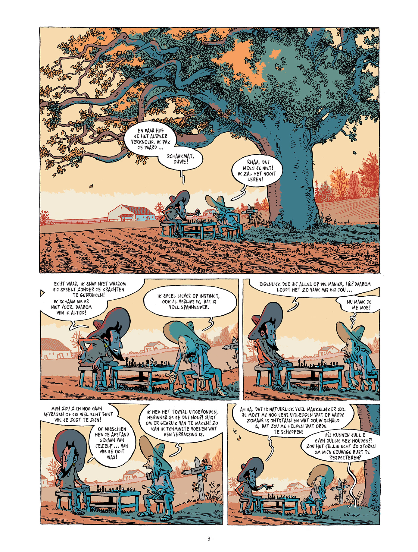 Hij heeft de slapstick en vooral de menselijke frustratie goed in de vingers: het ongeleide fanatisme van Medoro, de destructieve modus van Medoro’s vader (“in hun reet!”) en het constante katerige van Lincoln zijn heerlijk uitgebeeld. De monotone uitdrukking van Lincolns kop wordt soms wat eentonig, maar ja, dat zal hem worst wezen.